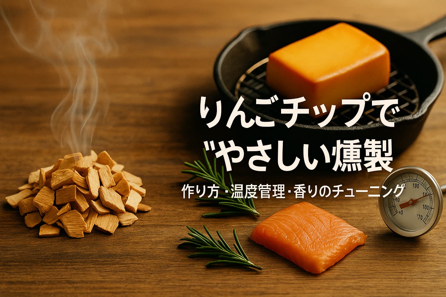 同じ燻製でも、食材ごとに「水分」「脂」「たんぱく質のきめ」が違います。りんごのチップは“やさしい甘香”が持ち味。だからこそ、下処理や温度・時間の設計が噛み合うと、肩肘張らない上品さで食材の素顔を引き立てます。以下の作り方は、最初の一回で成功体験をつくるための“骨格”。数値は目安として、色づき・香り・中心温度の3指標で最終判断を行いましょう。