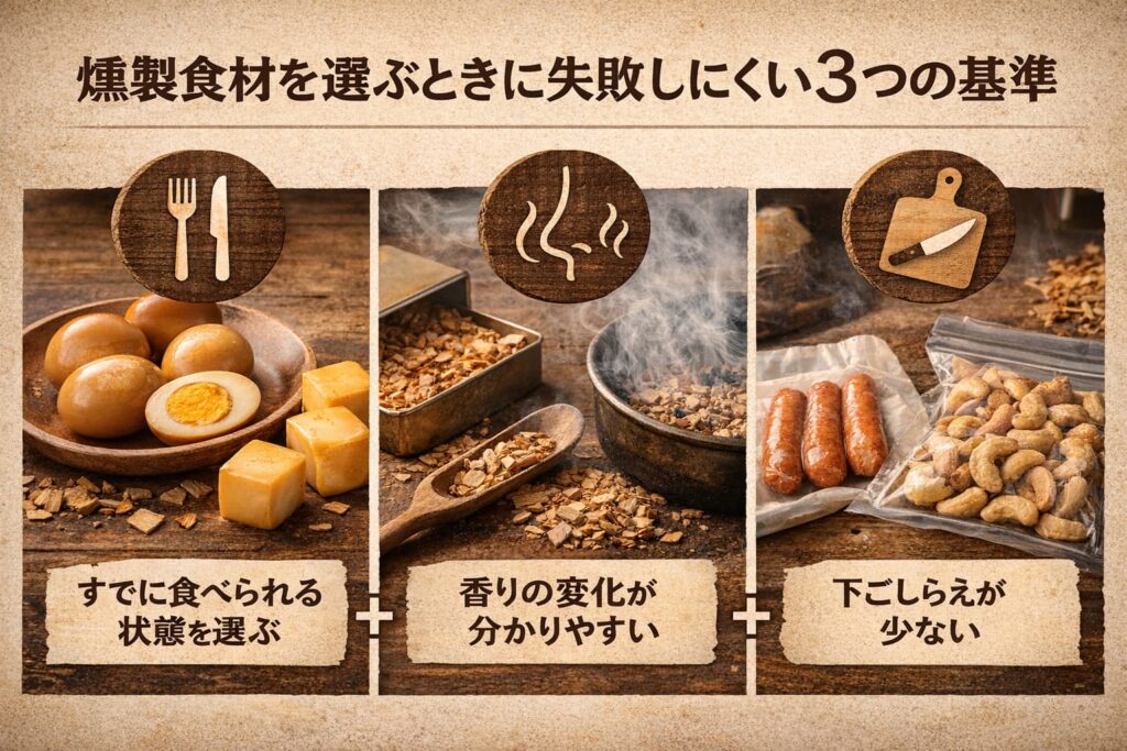 - 燻製食材を選ぶときに失敗しにくい3つの基準