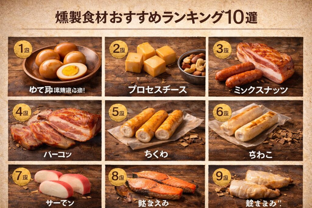 忙しい日でも試しやすい食材だけに絞って見たいなら、下ごしらえなしで楽しむ燻製食材10選|忙しい日でもすぐ試せる、失敗しにくいものだけも、かなり実用的な入口になります。