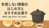 90〜100分|クールダウン:火源を止め、庫内で10分落ち着かせてから取り出します(温度差ショックを抑えるため)。