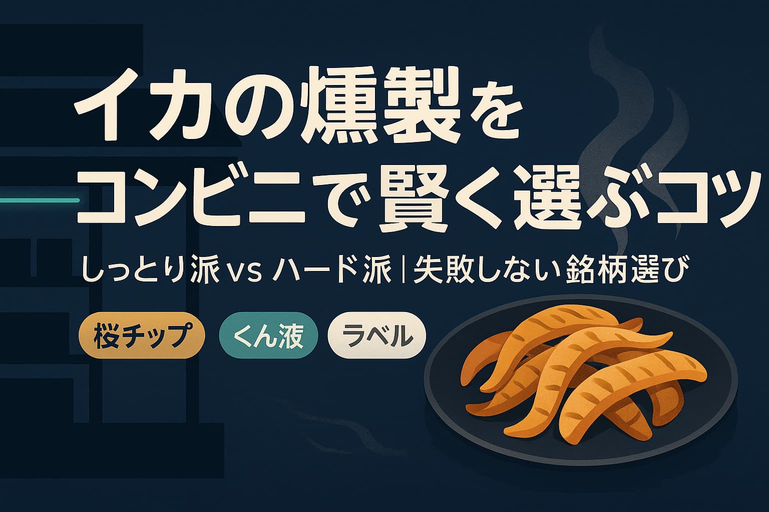 残業終わりの電車で、窓に映る自分の顔が少し疲れて見える夜。家までの途中でふらりと入ったコンビニの明かりは、海辺の灯台みたいにやさしい。棚の片隅で、静かに出番を待つイカの燻製。袋を開けた瞬間に立つ煙の気配、ほのかな酸味、舌の上に広がる甘みと潮のミネラル。今日をここで終わらせたい、そんな夜の合図がある。この記事では、しっとり派ハード派の違い、ラベルの読み方、失敗しない選び方まで、あなたの「今夜の一袋」をまっすぐ導く道しるべを用意しました。