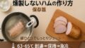 - 手順(所要10分):フライパンを組み、中火→発煙→弱火に切り替え、3〜5分スモーク。止火して2分置き、開けて熱を逃がし、塩を全体に薄くまぶす。